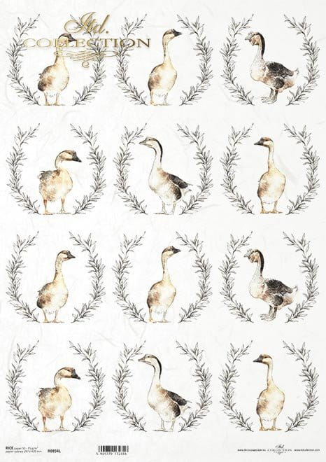 Papier ryżowy A3 R0894L Gęsi w wiankach