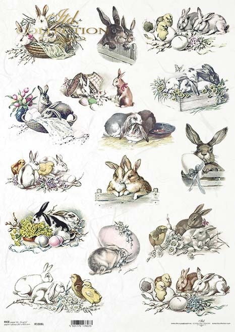 Papier ryżowy A3 R1008L Zwierzęta - zające i kurczaki WN