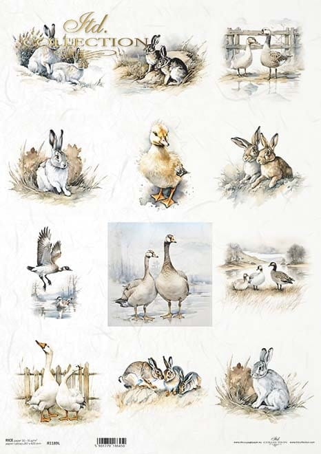 Papier ryżowy A3 R1189L Zwierzęta - ptaki i zające WN