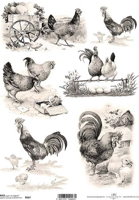 Papier ryżowy A4 R0667 kury sepia