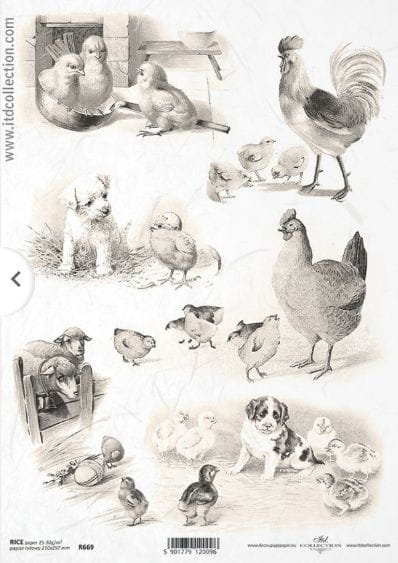 Papier ryżowy A4 R0669 kurczaczki sepia