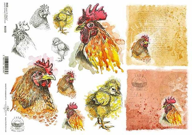 Papier ryżowy A4 R1572 Szczęśliwa farma kury