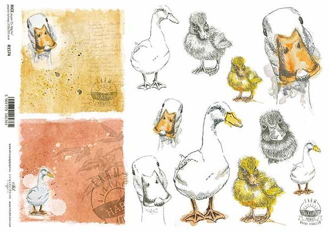 Papier ryżowy A4 R1574 Szczęśliwa farma kaczki gęsi