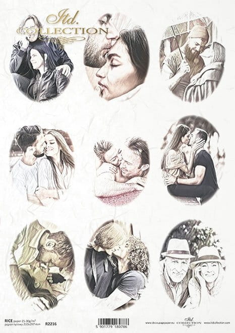 Papier ryżowy A4 R2216 napis b/cz Scenki zakochanych foto