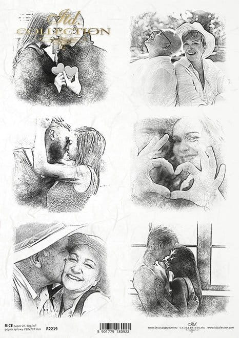 Papier ryżowy A4 R2219 napis b/cz Scenki zakochanych szkic