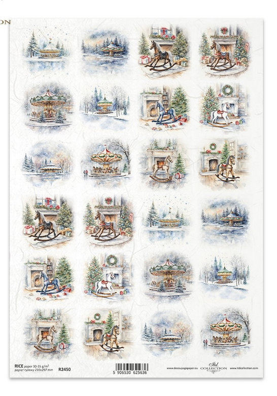 Papier ryżowy A4 R2450 Scenki koniki i karuzele x 24