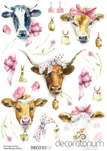 Papier ryżowy A4 krowy z kokardkami DECO 0158