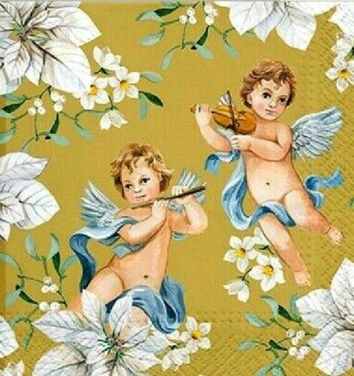 Serwetka PAW 1 sztuka - aniołki grające szare złote